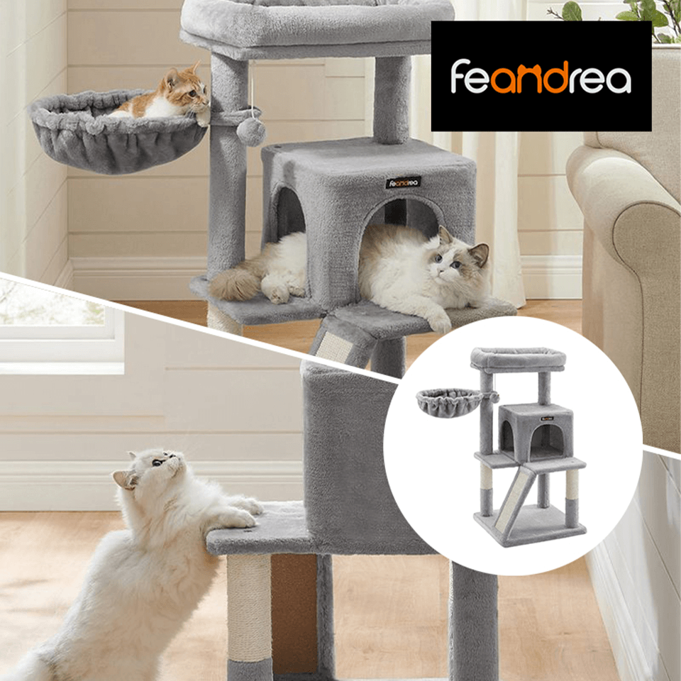 Grâce au bois composite de haute qualité et à la base renforcée, cet arbre à chat sera un excellent compagnon pour la croissance de votre chat