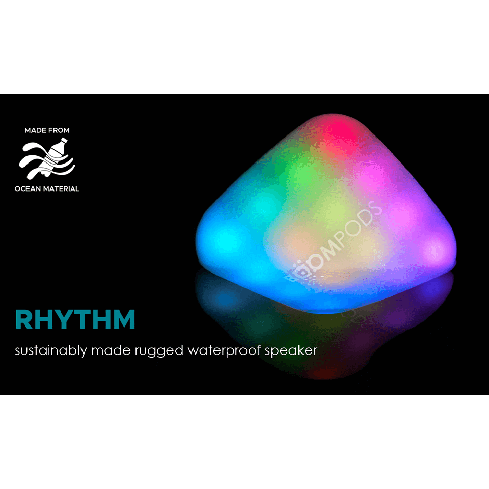 Pas une enceinte ordinaire. RHYTHM a transformé du plastique destiné à l’océan en une enceinte Bluetooth haut de gamme pas comme les autres.