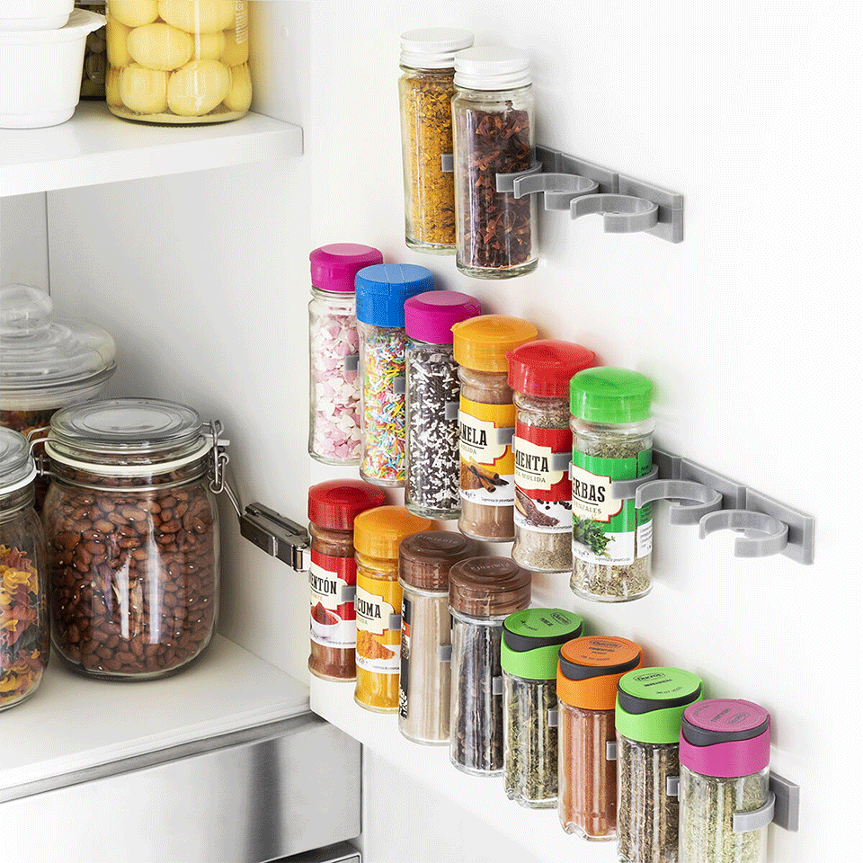Grâce à son système intelligent divisible et sa fixation adhésive ultra résistante, il vous permet d’organiser jusqu’à 20 pots d’épices sans percer, visser ni encombrer.