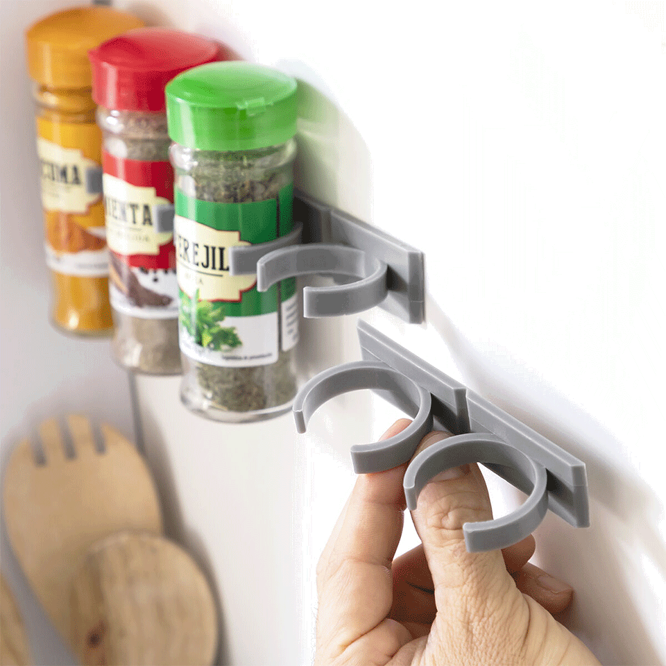 Chaque support s’adapte à la taille de vos pots et peut être installé selon vos besoins : sur les portes de placard, les carreaux ou toute autre surface lisse.