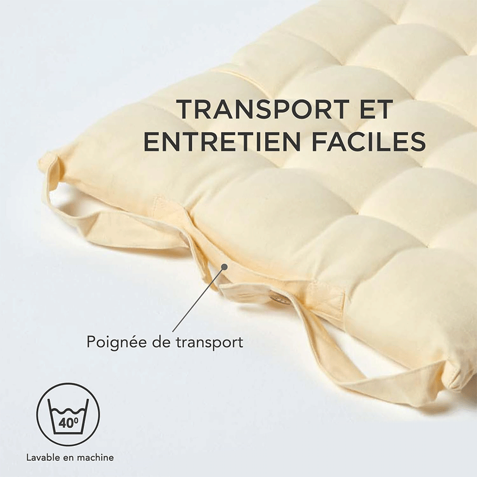- Rembourrage en polyester et tissu 100% coton ultra confortable pour une assise agréable au quotidien