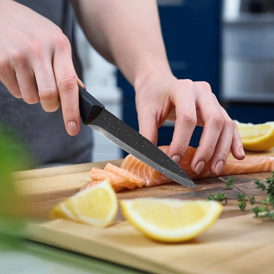 Les couteaux sont dotés de propriétés antiadhésives supérieures, garantissant une expérience de tranchage douce et sans effort.